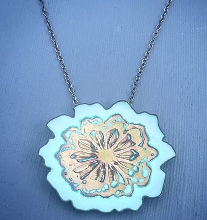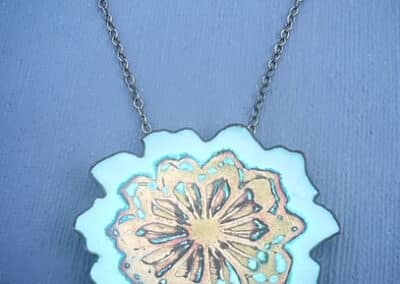 As a lifelong artist, Ndidi Kowalczyk’s work is inspired by color, movement, texture, nature and the act of creating JOY! She is formally trained in textile design and surface printing. When her passion for the grand scale of six-foot screen prints needed to be downsized she channeled her love of color, movement, and texture into jewelry design. While Ndidi truly enjoyed the marriage of sheet metal and fire she quickly realized her work lacked the color and vibrance she craved. Ndidi soon discovered enamelwork which reignited, reinforced and reinvigorated her love of color.