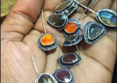 Although professionally Jorie was lead to teach special education, she always had some creative project going on the side. She dabbled in many mediums but none of them held her attention for long till in 2005 when she found jewelry making. She practiced beading and wire jewelry making but wire jewelry kept her interest and she wanted to learn more so in 2010 she took a week long class at John C. Campbell Fold School in beginners wire working. She was hooked. “Working with wire fed a need in me I didn’t know I had.” In 2013 she added wire weaving and fold- forming to her skills and in 2015 made her way to her first class in silversmithing. Hooked again, she is now creating beautiful artisan jewelry.